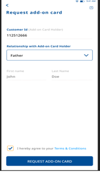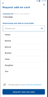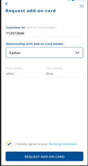 Accept TnC: Customers to accept the Terms and Conditions by checking the box and then submitting the request by clicking on “Request Add-on Card”.