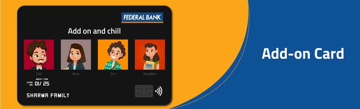 As a primary cardholder, Credit Card holder can request an add-on card for their family members having an existing relation with Federal Bank.