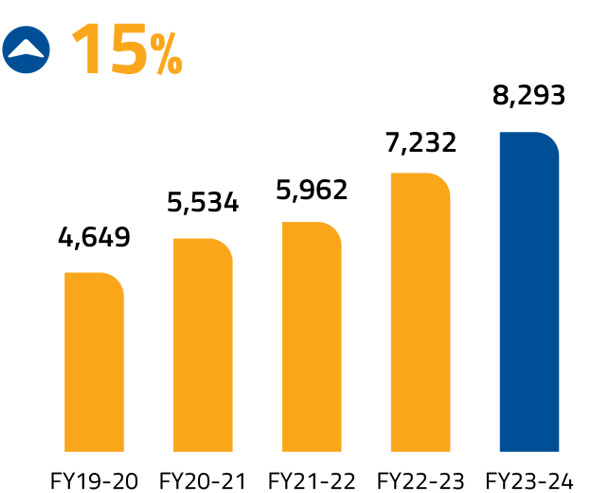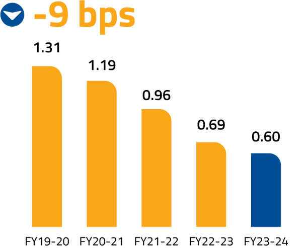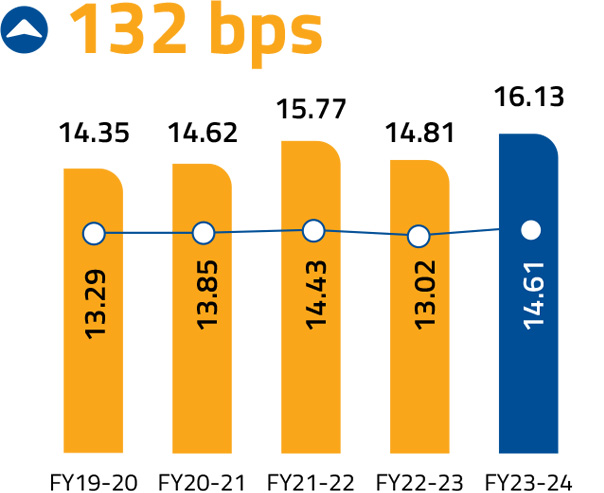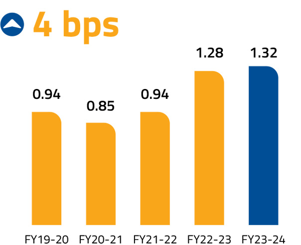 In FY 2023-24, 94.30% of Federal Bank's transactions went digital, solidifying its leadership in banking. To sustain this momentum, we are continuously enhancing our digital prowess through AI and Machine Learning. This enables personalised customer experiences and quicker decision-making, positioning us to capitalise on new market realities.