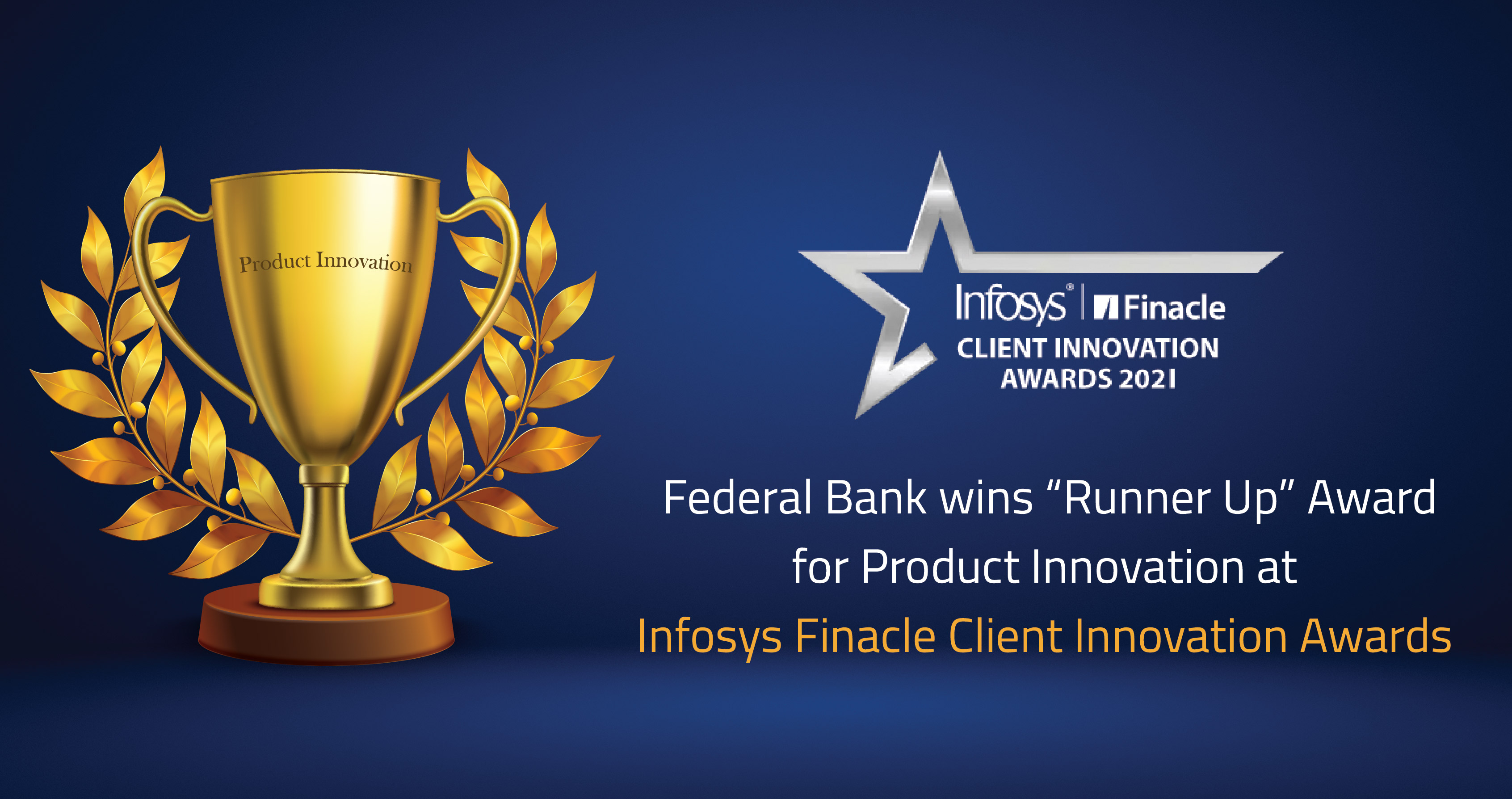 Federal Bank has been recognized as a runner up at the Infosys Finacle Client Innovation Awards program, in the category “Product Innovation"