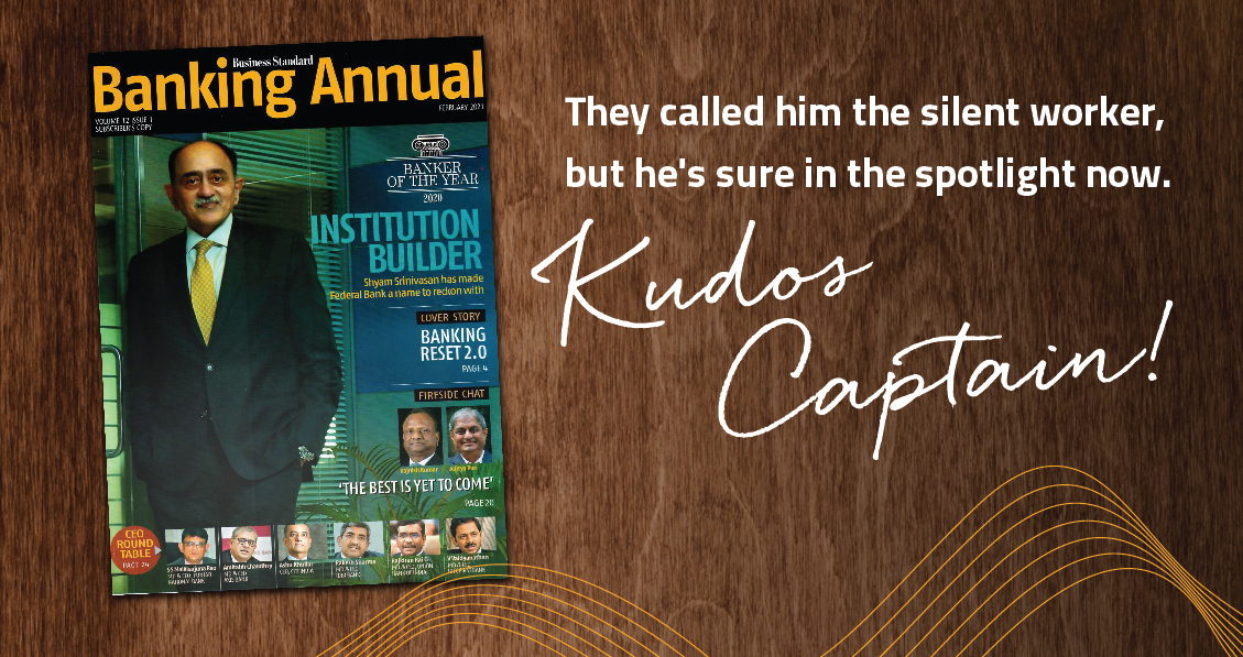 Shyam Srinivasan, MD &CEO, Federal Bank has been chosen as the "BS Banker of the year 2020".