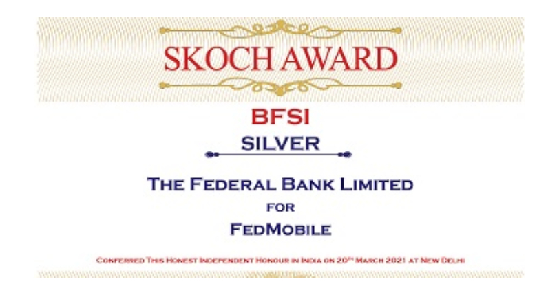 Federal Bank was awarded ‘THE BEST DIGITAL BANKING PRODUCT – PRIVATE SECTOR BANK’ at the ‘Lentra Digital Lending Transformation Global Summit 2022' in association with Economic Times Edge for ‘Federal Insta Loans - a digital lending platform for availing instant in- principle loan sanction digitally for MSME’s in less than 30 minutes by digitally validating the GST returns, IT returns and Bank statement.