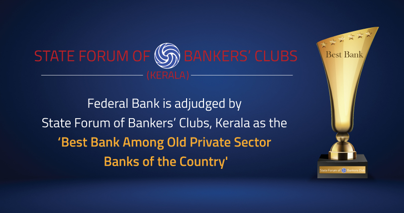 Federal Bank was adjudged by the State Forum of Bankers Clubs, Kerala as the ‘Best Bank Among Old Private Sector Banks of the Country.