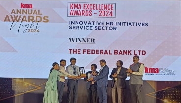 Federal Bank won the award for 'Innovative HR Initiatives' in the Service Sector from Kerala Management Association.