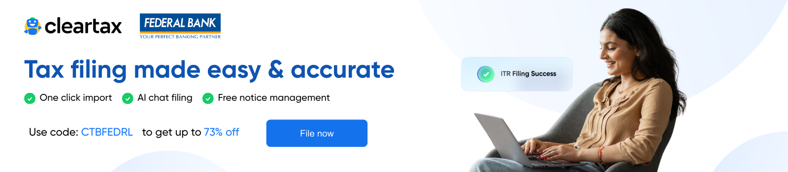 At your request, you are being re-directed to a third party site. This is purely a referral service and the service is provided on a non-participation basis. Federal Bank is only facilitating for customers to access the services of ClearTax and in no context a service of the Bank. On clicking the above link, you are accepting the terms and will be directed to the website of Defmacro Software Pvt. Ltd.(herein after referred to as ClearTax) and necessary fees for availing the services may have to be paid there by you. Please also note that when you click on the link above, you will be leaving Federal Bank's website and our policies, terms and conditions, disclaimers will cease once you leave our website. Federal Bank and its affiliates, subsidiaries, employees, officers, directors and agents will not be responsible in any manner whatsoever for confidentiality of the data shared by you and for any loss, damage, costs & charges direct or indirect incurred by you, arising out of or in connection with your access to the ClearTax website or for any deficiency in the services of ClearTax or for the failure or disruption of the website of ClearTax. The use of any service, products or information hosted on ClearTax website is at your sole risk and discretion. The information available on the website is subject to change, updating, revision, verification and amendment without notice and such information may change materially. Grievances & concerns shall be reported to ClearTax and settled accordingly.