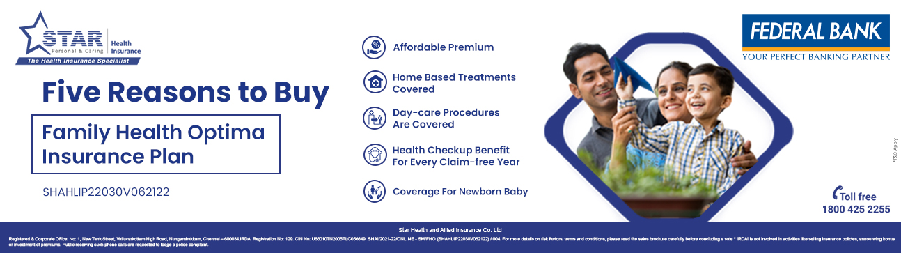 The Federal Bank Limited is a Corporate Agent having registration number - Regn. No. CA0227.  The service provided by The Federal Bank Limited is purely an agency service and is carried out strictly on a non-risk participation basis. The Federal Bank Limited, as corporate agent does not underwrite the risk or act as an insurer. Participation by the Federal Bank’s customers in the insurance product is purely on a voluntary basis and is not linked to the availment of any other facility from the Federal Bank Limited.