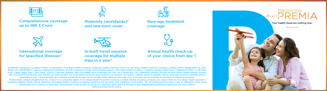 The plan provides you maternity benefits for up to two deliveries, which can be availed worldwide excluding USA and Canada. This benefit is available after both you and your spouse have been covered under the policy for two continuous years.