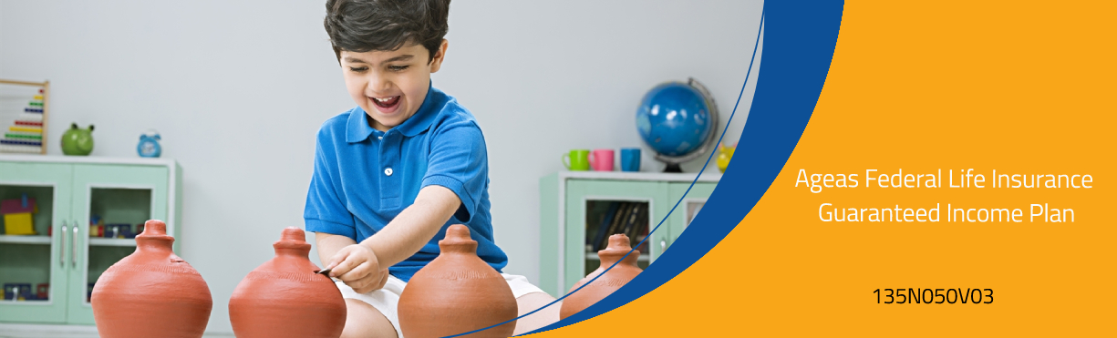 Ageas Federal Life Insurance Guaranteed Income Plan (Product UIN No. 135N050V03) is a non-linked, non-participating insurance plan. Life Insurance coverage is available in this plan. For more details on risk factors, terms and conditions, please read the sales brochure carefully before concluding a sale. This product does not participate in the profits of the Company. Tax benefits are as per the Income Tax Act, 1961 and are subject to changes in the tax from time to time. Ageas Federal Life Insurance Company Ltd. does not assume responsibility on tax implication mentioned anywhere in this advertisement. Please consult your own tax consultant to know the tax benefits available to you. This product is underwritten by Ageas Federal Life Insurance Company Limited - Formerly known as IDBI Federal Life Insurance Company Limited (Regn. No 135; Corporate Identity Number (CIN) - U66010MH2007PLC167164) having its registered office at 22nd Floor, A Wing, Marathon Futurex, N. M. Joshi Marg, Lower Parel - East, Mumbai - 400013. Toll Free: 1800 209 0502. Insurance cover is available under this product. Trade Logo displayed above belongs to The Federal Bank Limited and Ageas International Insurance N. V. and used by Ageas Federal Life Insurance Company Limited under license from respective partners. GST and other levies, as applicable, will be levied as per the extant laws. The Federal Bank Limited is a Corporate Agent having registration number - Regn. No. CA0227. The service provided by The Federal Bank Limited is purely an agency service and is carried out strictly on a non-risk participation basis. The Federal Bank Limited, as corporate agent, does not underwrite the risk or act as an insurer. Participation by the Federal Bank’s customers in the insurance product is purely on a voluntary basis and is not linked to the availment of any other facility from the Federal Bank Limited.