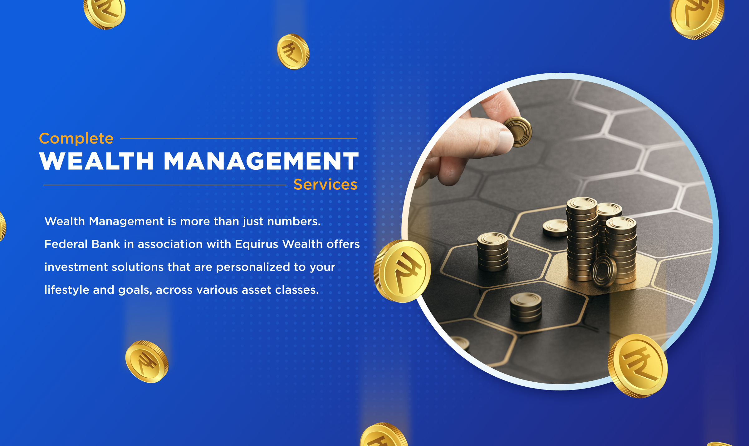 Federal bank tandems with Equirus Wealth. to provide a wide range of best-in- class wealth advisory solutions. The tailor-made wealth advisory service is designed to provide personalized financial strategies and investment solutions that align with your individual goals and risk tolerance, ensuring optimal portfolio performance and long-term financial success.